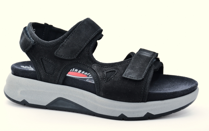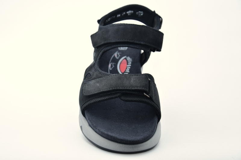 Sandal med tre justerbara remmar. Innerfodret och innersulan är i textil. Innersulan är löstagbar för dig som har egen sula.